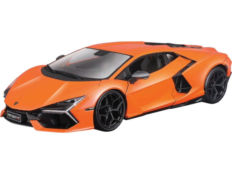Kovový model auta Lamborghini Revuelto v měřítku 1:43 nejen pro sběratele od Bburaga. Detailní provedení, přívětivá cena, barva oranžová, délka přibližně 10 cm.