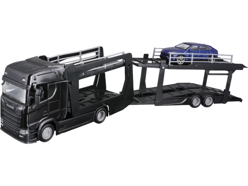 Bburago sada 18-31465 model tahače Scania 770S s přepravníkem aut a Lamborghini Urus v měřítku 1:43