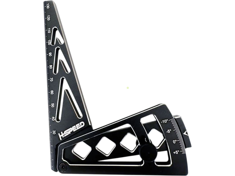 Měřidlo odklonu je přesný nástroj z hliníku určený k měření úhlu odklonu kol u RC modelů aut. Umožňuje nastavení a přesnou změnu odklonu kol pro vyladění jízdních vlastností. Rozsah stupnice -10° až +5°. Maximální výška kola 130mm.
