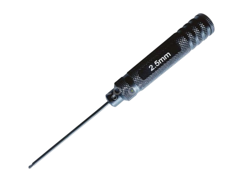 Kvalitní imbus šroubovák s kuličkou H-Speed o velikosti 2.5 mm má hliníkovou rukojeť s protiskluzovým křížovým vroubkováním o délce 92 mm a průměru 18 mm s plastovou otočnou zadní opěrkou a dřík o délce 84 mm. Kulička umožňuje šroubování pod úhlem.