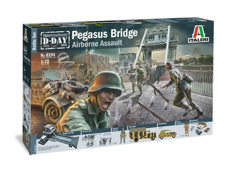 Plastikový model Italeri 6194 - diorama Pegasus Bridge Airborne Assault v měřítku 1:72. Obtížnost 3.