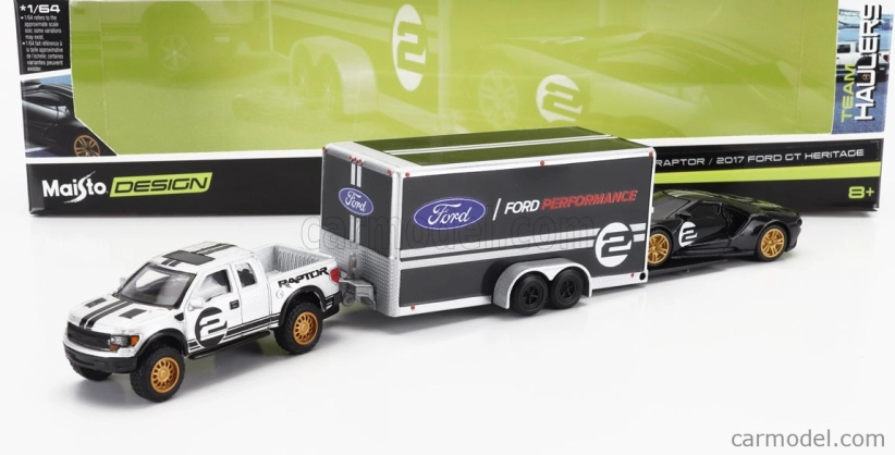 Maisto Ford USA F-150 Raptor Pick-up 2010 With Trailer Car Transporter + Gt N 2 2017 1:64 čierna strieborná