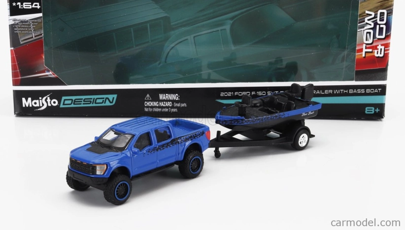Maisto Ford usa F-150 Svt Raptor Pick-up With Bass Boat And Trailer 2021 1:64 Modrá Černá