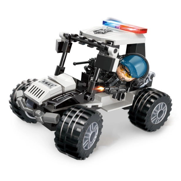 Zatočte s chaosem a podvodníky, vylepšená policejní auta odvedou vždy svou práci! Vysoce variabilní stavebnice Qman z pestrobarevných plastových kostiček lze kombinovat s podobnými stavebnicemi mnoha dalších významných výrobců. Vyrobeno z kvalitního, nezávadného a odolného, ABS plastu. Baleno v pestře potištěné papírové krabičce.