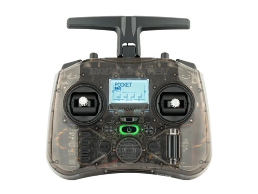 RadioMaster Pocket ELRS malý a lehký vysílač, ale umí toho opravdu hodně. Hlavní předností je nainstalovaný systém ELRS a firmware EdgeTx. Vysílač má také šroubovací kniply a sklopnou anténu pro snadnější a bezpečnější transport a skladování.