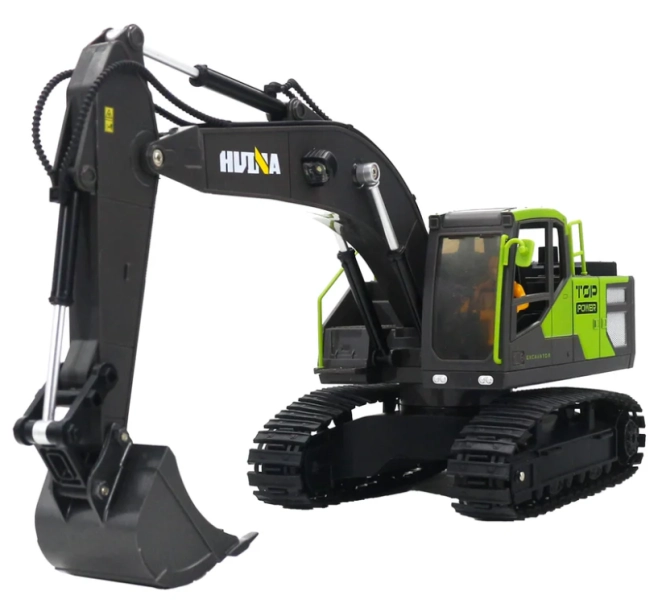 RC pásový bagr HN661, měřítko 1:18, dálkové ovládání 2,4 GHz, 11 kanálů, dosah až 40 metrů, LED osvětlení, generátor kouře, otočná věž o 360 stupňů, doba provozu až 25 minut. Rozměry: 36 x 12,7 x 21 cm. Hmotnost 650 g.