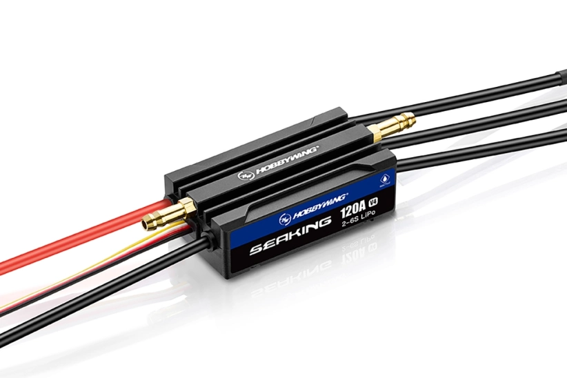 Obousměrný regulátor firmy Hobbywing speciálně určený pro modely lodí. Ideální pro rychlostní čluny do délky 1000mm a makety. Trvalý proud 120A, špičkový 500A. Spínaný BEC 6,0/7,4/8,4V 84A. Napájení 2-6S LiPo. Hmotnost 123,5g. Rozměry 64,7x36,3x22,5mm. Vodotěsný a vodou chlazený.