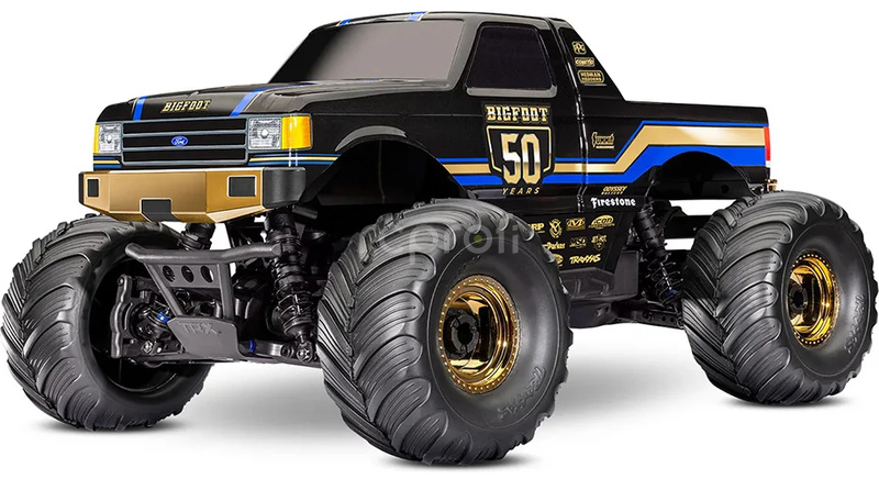 RC model auta Bigfoot 1:10 BL-2s 4WD je vytvořen podle skutečných Monster Trucků a nyní přichází ve speciální limitované edici 50th Anniversary, která oproti standardnímu modelu Bigfoot obsahuje designovou karoserii a kola ve zlatém chromování. Dále je navíc v balení LiPo akumulátor 7.4 V 3000mAh s USB-C nabíječem. S delším rozvorem pro stabilitu a střední světlou výškou 62 mm překoná model překážky jako žádné jiné auto. Dostatek výkonu mu k tomu dodává střídavý motor s regulátorem BL-2S. Střídavý pohonný systém přináší brutálnější akceleraci, dlouhou životnost a zvýšení rychlosti modelu až na 56 km/h. Model je továrně vybaven sadou Extreme Heavy Duty pro vysokou odolnost. Jízdu po zadních kolech umožňují kolečka Wheelie. To vše je zabaleno do praktické karoserie s bezsponkovým uchycením.