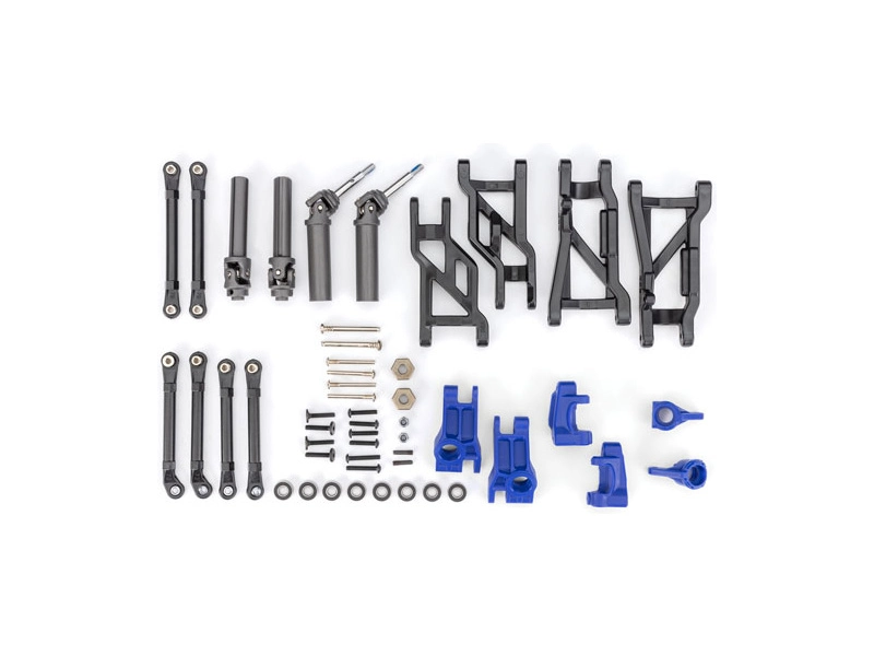 Tunigová sada zavěšení Extreme Heavy Duty - modrá, pro vysoké zatížení. Upgradujte exponované části vašeho modelu Slash 2WD a Raptor 2WD. Jednotlivé díly sady jsou vyrobeny z odolných materiálů.