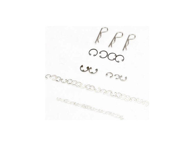 Traxxas - sada segrovek a sponek obsahuje 3 ks sponky karosérie, segerovku do otvoru 8,5mm 4ks, segerovky na hřídel 3 ks 3,2mm, 2 ks 2,5mm, 28 ks 2mm, 20 ks 1,2mm.