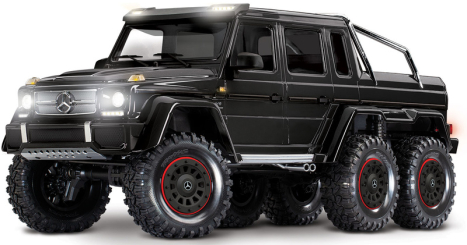 Expediční RC model Traxxas TRX-6 Mercedes G 63 6x6, je postaven šasi TRX-4. Všechny přednosti toho šasi, jako jsou portálové nápravy, čtyřbodové zavěšení, dálkově ovládané diferenciály, dálkově ovládaná dvourychlostní převodovka, vysoký úhel natočení kol a další, byly zachovány a navíc byla přidána další náprava. Unikátní náhon 6x6, tak bude v terénu nepřekonatelný. Výborné zpracování podtrhuje karoserie v černé, sametově bílé, nebo tmavě šedé metalíze. Věrně zpracovaná karoserie zachovává všechny detaily, včetně množství chromových dílů. Novinkou jsou čirá okna, která dotvářejí 3D vzhled RC modelu.