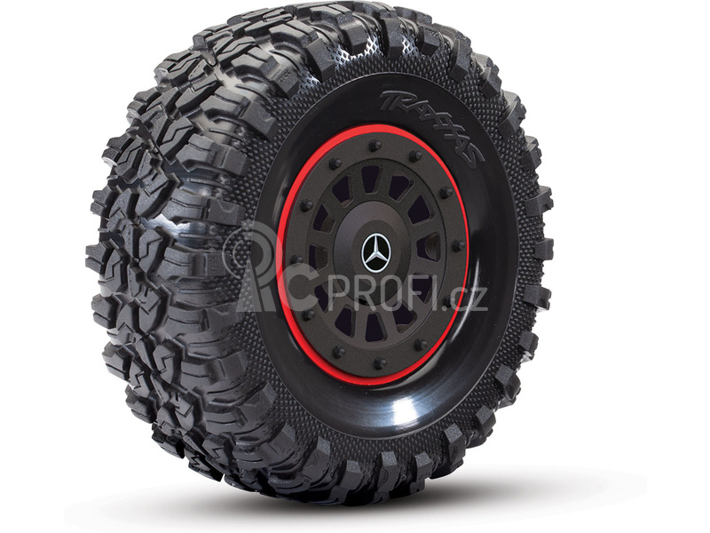 Stejně jako celý RC model i kola jsou zpracovaná do nejmenších detailů. Stylový červený proužek a znak Mercedes nechybí na žádném z šesti kol. Na discích jsou nalepené měkké pneumatiky S1 určené do všech typů terénů. Standardní unášeč 12 mm hex.