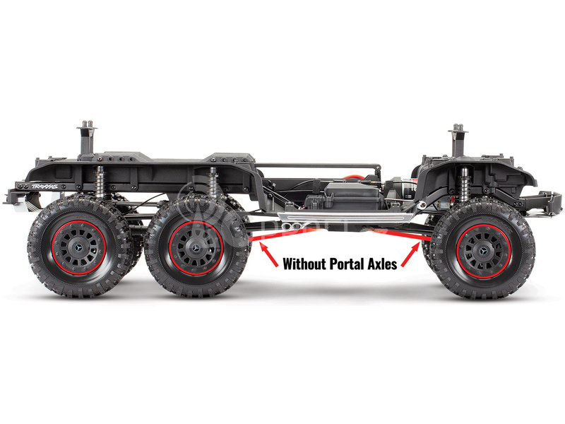 Šasi TRX-6 používá portálové nápravy s nápravovou převodovkou. Nápravová převodovka zvyšuje světlou výšku, snižuje namáhání diferenciálů, převodovky, kardanových hřídelí a dále se snižuje torzní síla - model se méně naklápí